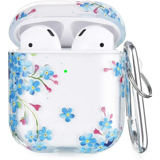 V-Moro case for Apple Airpods 1/2nd Generation,Shockproof Clear Flower TPU Protective Cover With Keychain,Charging Case Cover