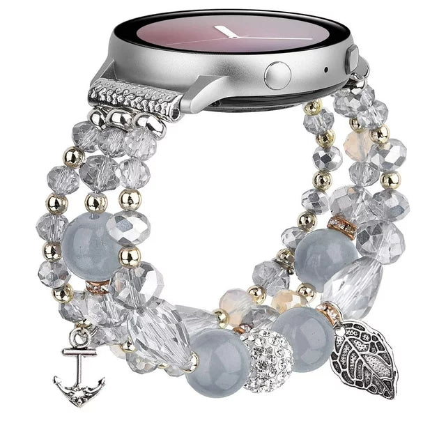 V-Moro Fashion Elastic Beaded Strap Bracelet Samaung Galaxy Active/Active2 Watch Bands Women Grey